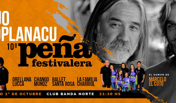 Los artistas santiagueños serán el número central de la noche que se llevará a cabo el Sábado 1ro. de Octubre en el Club Banda Norte. También actuarán Orellana Lucca, la Familia Charriol, Chango Muñoz, el Ballet Santa Rosa, y todo el humor de Marcelo «El Coto».