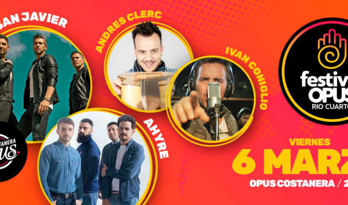 El día VIERNES 6 DE MARZO DE 2020 se llevará a cabo en el Opus Costanera (ubicado en la intersección de Río Grande y Manuel Giachino, a 100 mts del Hotel Howard Johnson) la cuarta edición del FESTIVAL OPUS, un evento único en la ciudad que tendrá como figuras a DESTINO SAN JAVIER, AHYRE, ANDRES CLERC, IVAN CONIGLIO y TATA ZALAZAR.