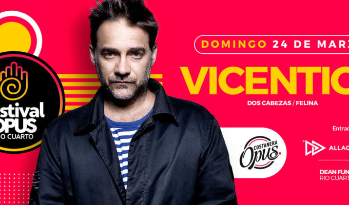 VICENTICO, referente indiscutido en la escena de la música nacional, se presenta el próximo Domingo 24 de Marzo de 2019 en Opus Costanera (nuevo predio ubicado en la intersección de Río Grande y Manuel Giachino, a 100 mts del Hotel Howard Johnson) en el marco de la tercera edición del FESTIVAL OPUS. También actuarán Dos Cabezas y Felina.