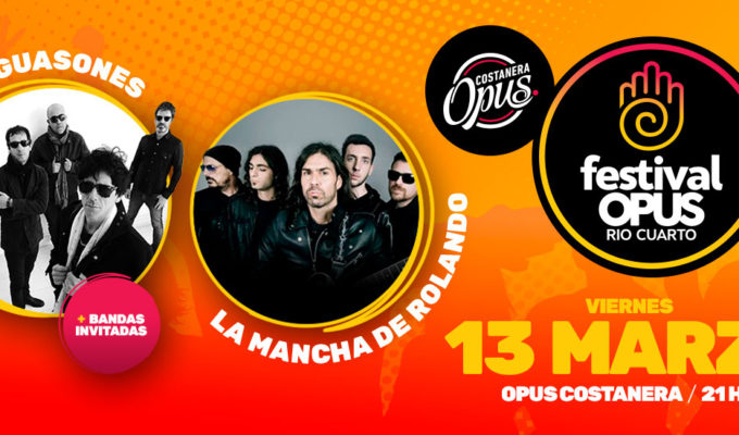 El día VIERNES 13 DE MARZO DE 2020 se llevará a cabo en el Opus Costanera (ubicado en la intersección de Río Grande y Manuel Giachino, a 100 mts del Hotel Howard Johnson) la cuarta noche de la cuarta edición del FESTIVAL OPUS, un evento único en la ciudad que tendrá como figuras a GUASONES, LA MANCHA DE ROLANDO, KINGSTON JAM y REVOLUXIONES.