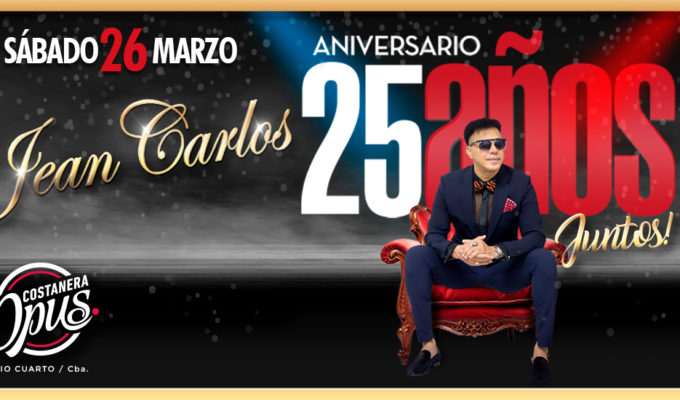 JEAN CARLOS sábado 26/03 21:00 Hs - 23:45 Hs $1300 Sábado 26 de marzo Jean Carlos 25 años juntos Te esperamos a disfrutar de un baile único e histórico!! Primer tanda de tiquets $1300 Tiquets en venta de lunes a viernes a partir de las 18 hs en Opus Costanera Lugar: Opus Costanera FacebookTwitterGoogle+PinterestE-mail