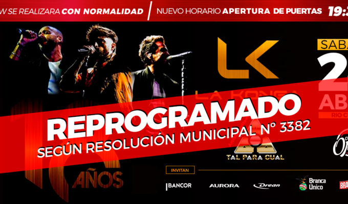 Las entradas adquiridas tendrán validez para la nueva fecha. Quienes deseen la devolución del importe de las entradas deberán concurrir a la boletería de OPUS COSTANERA (Río Grande 688 – Río Cuarto) desde el lunes 26 de abril hasta el viernes 30 de abril inclusive en el horario de 18 a 20 hs.